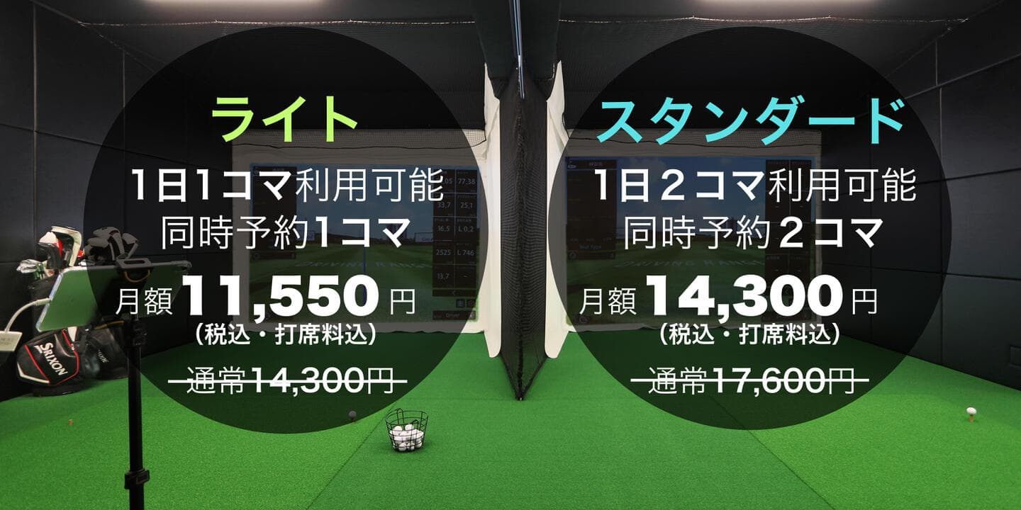 月額プランは2種類、どちらを選んでも毎日利用可能で、利用ごとの打席料などは一切かかりません!!