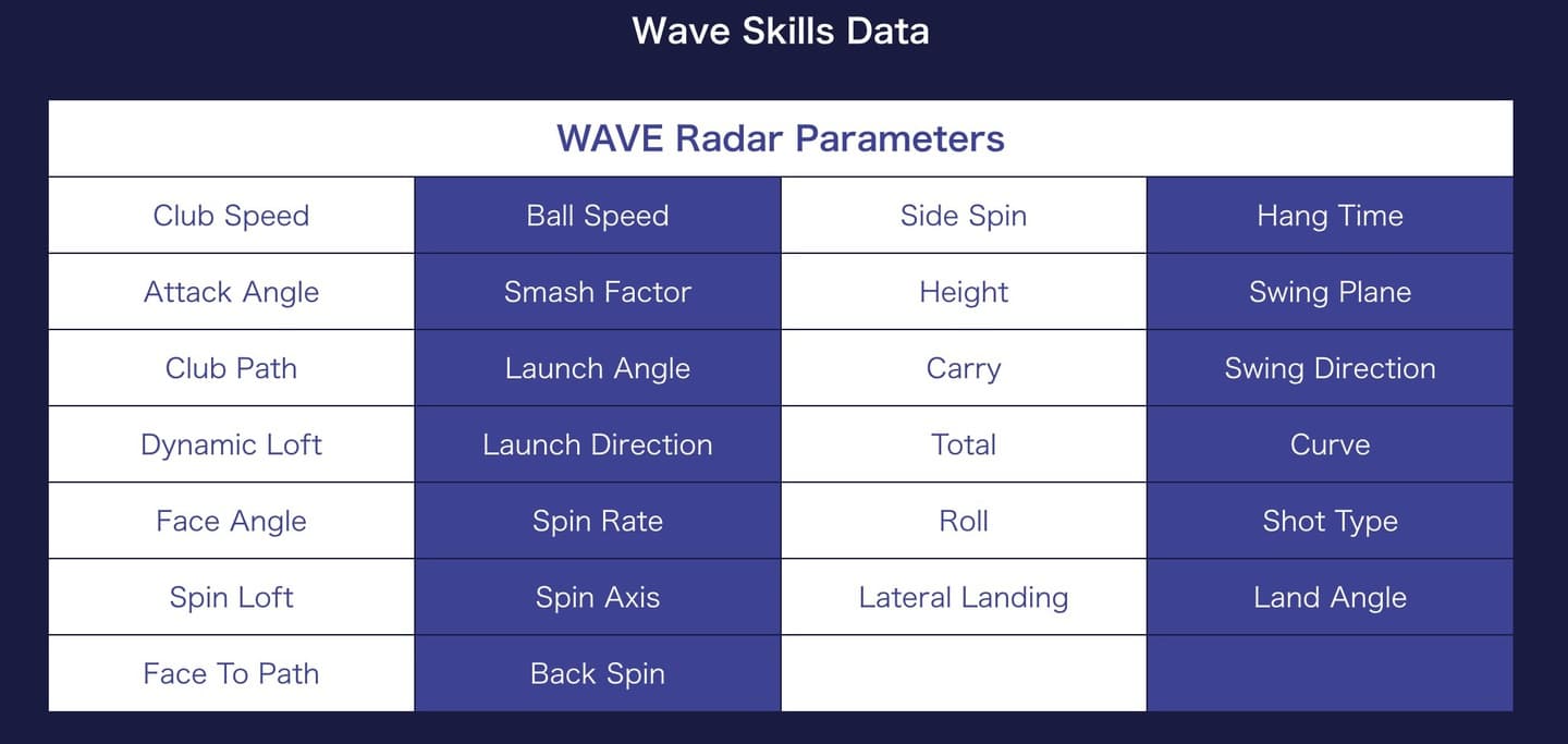 「WAVE」はロングドライブからアプローチまであらゆるショットを正確に26項目で検出可能なゴルフ弾道システムです